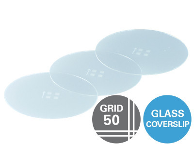 Gridded Glass Coverslips Grid-50: Ø 28 mm, #1.5H